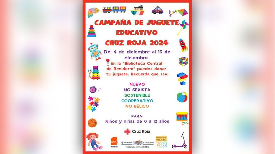 Pellicer ha explicado que “desde Cruz Roja se nos ha trasladado que se requieren, especialmente, juguetes que no solo diviertan, sino que también eduquen y fomenten valores positivos”. En concreto, han solicitado que los juguetes que se donen cumplan los siguientes requisitos: que sean nuevos, porque todos los niños merecen estrenar; que sean no sexistas, para que la imaginación no tenga límites ni etiquetas; que sean sostenibles, pensando en un futuro mejor para todos; que sean cooperativos, para que inspiren a compartir y trabajar en equipo; y que sean juguetes no bélicos, para fomentar un mundo más pacífico y solidario.